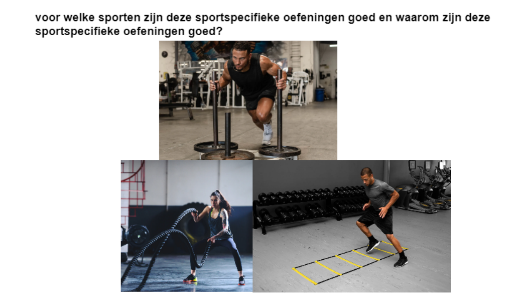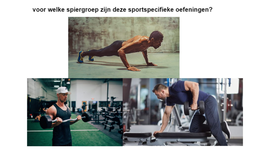 de leerlingen moeten raden voor welke sporten de sportspecifieke oefeingen goed zijn en waarom deze goed zijn.